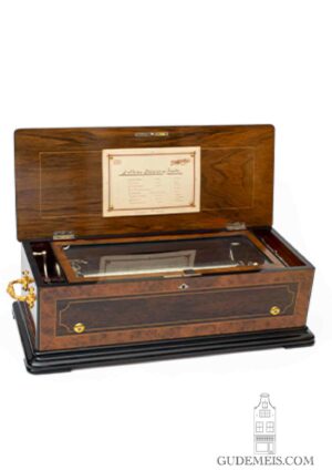 Atmos klokkenBarometersCartel klokkenChronometerKandelaarsLantaarnklokkenMysterieusesPendulesRegulateursReisklokkenReligieusesRenaissance klokkenSkeletklokkenSpeeldozenStaande klokkenTafelklokkenVariaWandklokkenVerkochtEen fraaie Zwitserse Sublime Harmony Piccolo cilinder speeldoos van Baker Troll, circa 1890.Een Zwitserse speeldoos op tafel met verwisselbare cilinders, Bremond, circa 1870.Een fraaie Zwitserse marquetterie ingelegde cilinder speeldoos, PVF, circa 1870.Een Zwitserse palissander cilinder speeldoos met 8 aria’s, Rivenc, circa 1880.