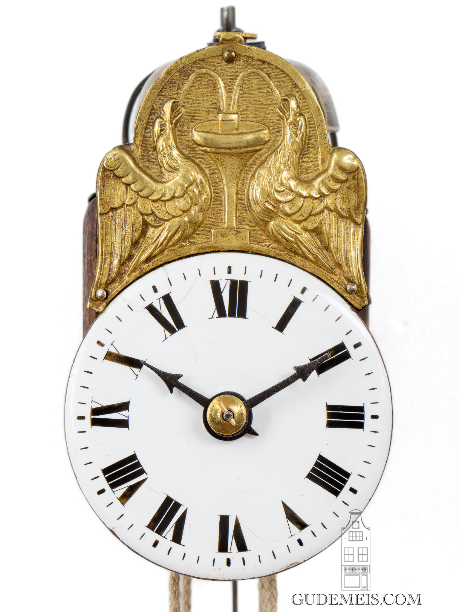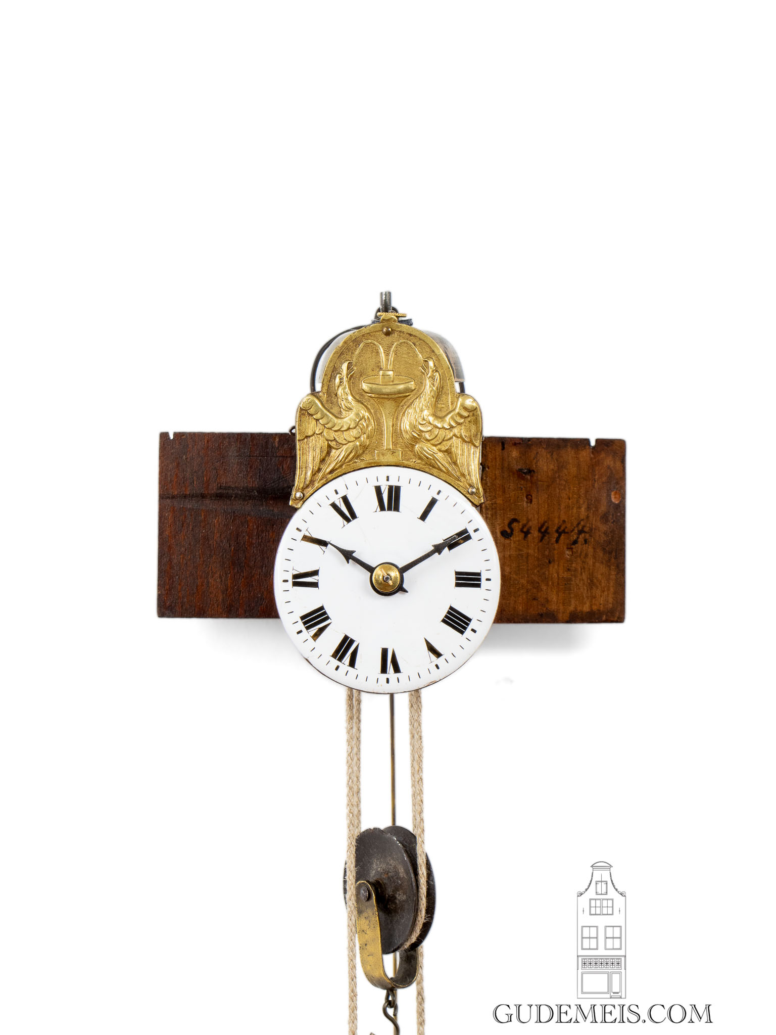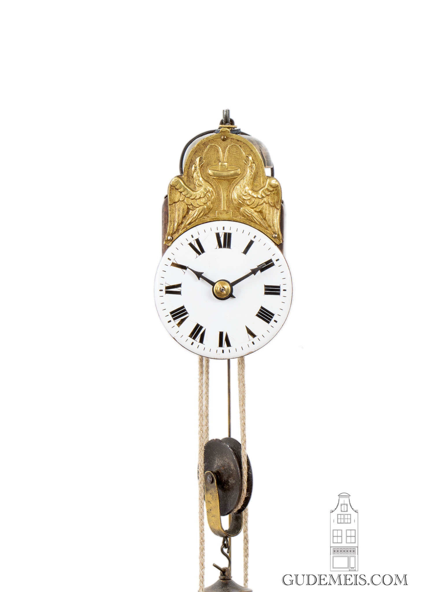 Een miniatuur Duits Schwarzwald ‘Sorg Tropfenuhr’ wandklokje met slagwerk, circa 1830.