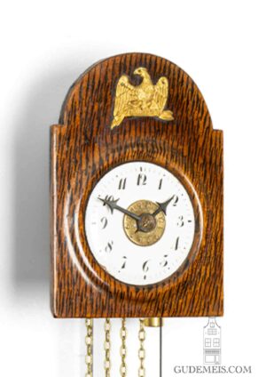 Het rechthoekige uurwerk wordt aangedreven door twee veertonnen en heeft een gangduur van acht dagen. Het wordt gereguleerd door een Brocot-ankergang in combinatie met een slinger. De klok slaat de hele en halve uren op een bel d.m.v. zaagslagwerk.