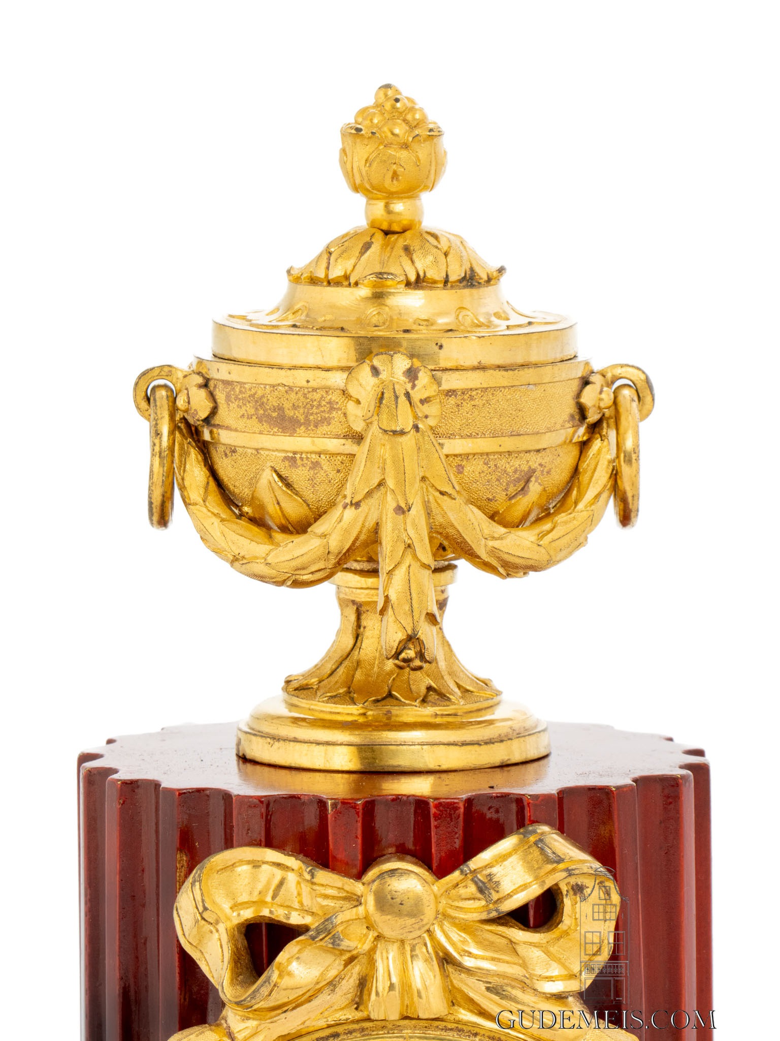 Robert Osmond (1711 – 1789) student of Louis Regnard became master bronze caster in 1746. He started a workshop that soon gained a good reputation. He was joined by his nephew Jean-Baptiste Osmond in 1753. After having worked in the rococo style they turned to the new Neo-classical style in the early 1760’s. It is their work from this period that they are most famous for and already were in the day. Although they made all sorts of gilt bronze objects, they are best known for their clock cases of which many original designs still exist. With the column being an element that they are famous for, this clock is a great example of their workmanship.
