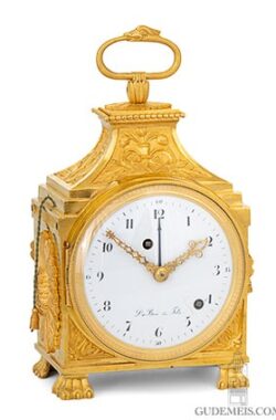 A Swiss Louis XVI ormolu quarter striking and alarm pendule d’officier, Du Bois & Fils, circa 1790.