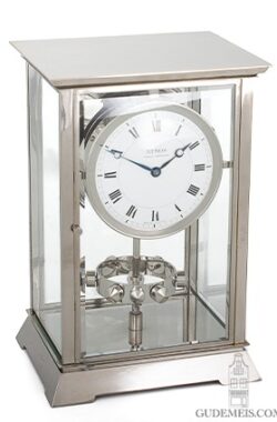 A French Art Deco nickel Reutter patent atmos clock model PX1, circa 1932.
